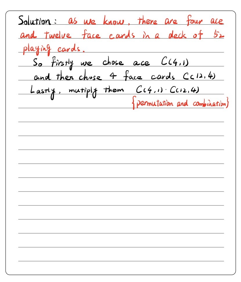 In a standard deck of cards there are three face cards (a face card is a jack, a queen, and a king) for each of the four suits. There are 13 spades in a deck of 52 cards. And each suite has 3 face cards. Instead, the figures represent knights, military heroes and even brave faces from mythology. Explanation a normal deck of cards has 52 cards, consisting four different suits each having 13 select card from the deck(card cards). Here's a tricky one for you. There are three face cards of each suit in a deck, for a total of 12 court or face cards per deck. The deck does not include any jokers. (most of) the rest of the cards in a deck are number cards… 9 number cards per suit for a total of 36 numbers cards per deck. This means the chance of pulling an ace out of a 52 card deck would be 1/13 or a 7.7% chance. Remember, ace is not considered as one of the face cards. Thus there are three face cards for each suit and a total of 12 face cards in the deck. So in a deck of cards there are a total of 12 face cards.